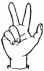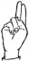 На ћирилици написано РАДОВАН ЛУДОШКИ састоји се из 14 слова [?]. Исписано ћириличном једноручном азбуком за глувонеме: